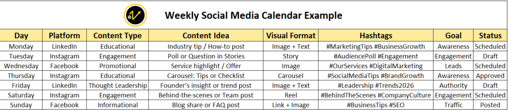 A well-planned calendar also makes it easier to track performance, avoid last-minute posting, and balance different types of content such as promotional, educational, and engagement-focused posts.